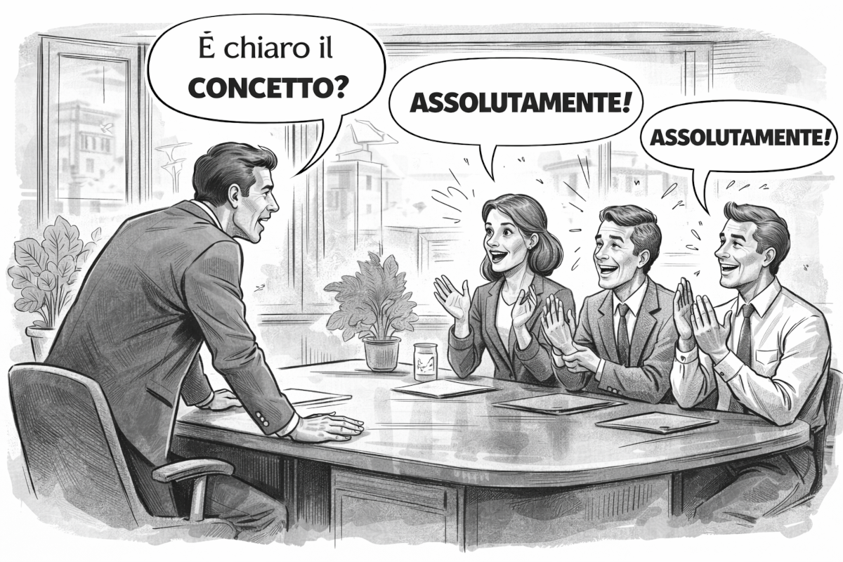 Il suo habitat naturale è la riunione. Lì assolutamente non è una parola. È un deodorante verbale. Il collega propone una cosa vaga e un altro risponde "assolutamente", che non significa nulla ma suona collaborativo. È il sì di chi vuole partecipare senza compromettersi.