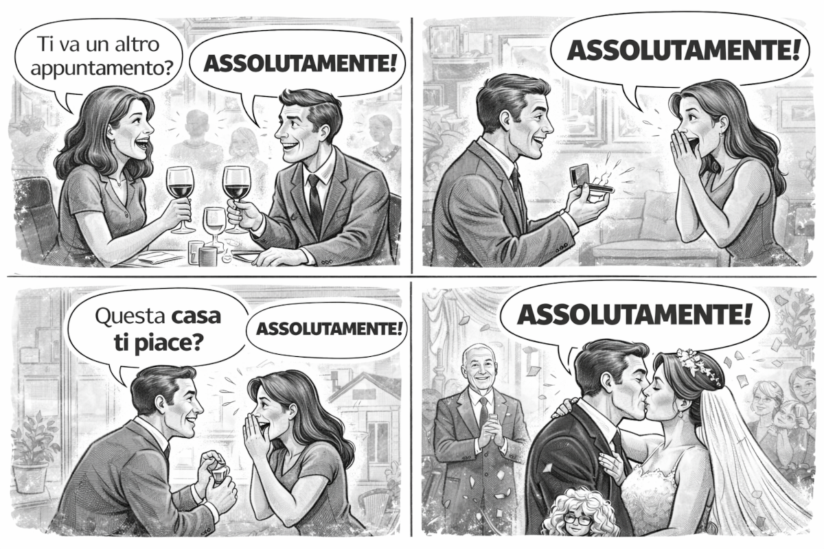 Ci piace perché evita la semplicità. Dire "sì" è nudo. Dire "no" è netto. Dire "forse" è onesto. "Assolutamente" invece ti mette addosso una giacca autorevole anche se sotto sei in canottiera argomentativa.